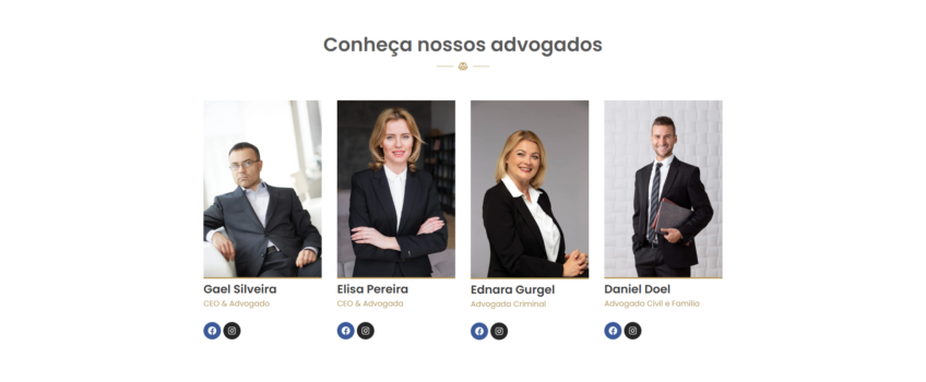 O site é responsivo, funcionando perfeitamente em celulares e computadores, e conta com integração com WhatsApp e redes sociais. A personalização é feita conforme a identidade visual do cliente, respeitando cores, tipografia e estilo do escritório. Também inserimos os textos e imagens enviados, adaptando todo o conteúdo ao modelo escolhido para manter um padrão profissional e focado em conversão.