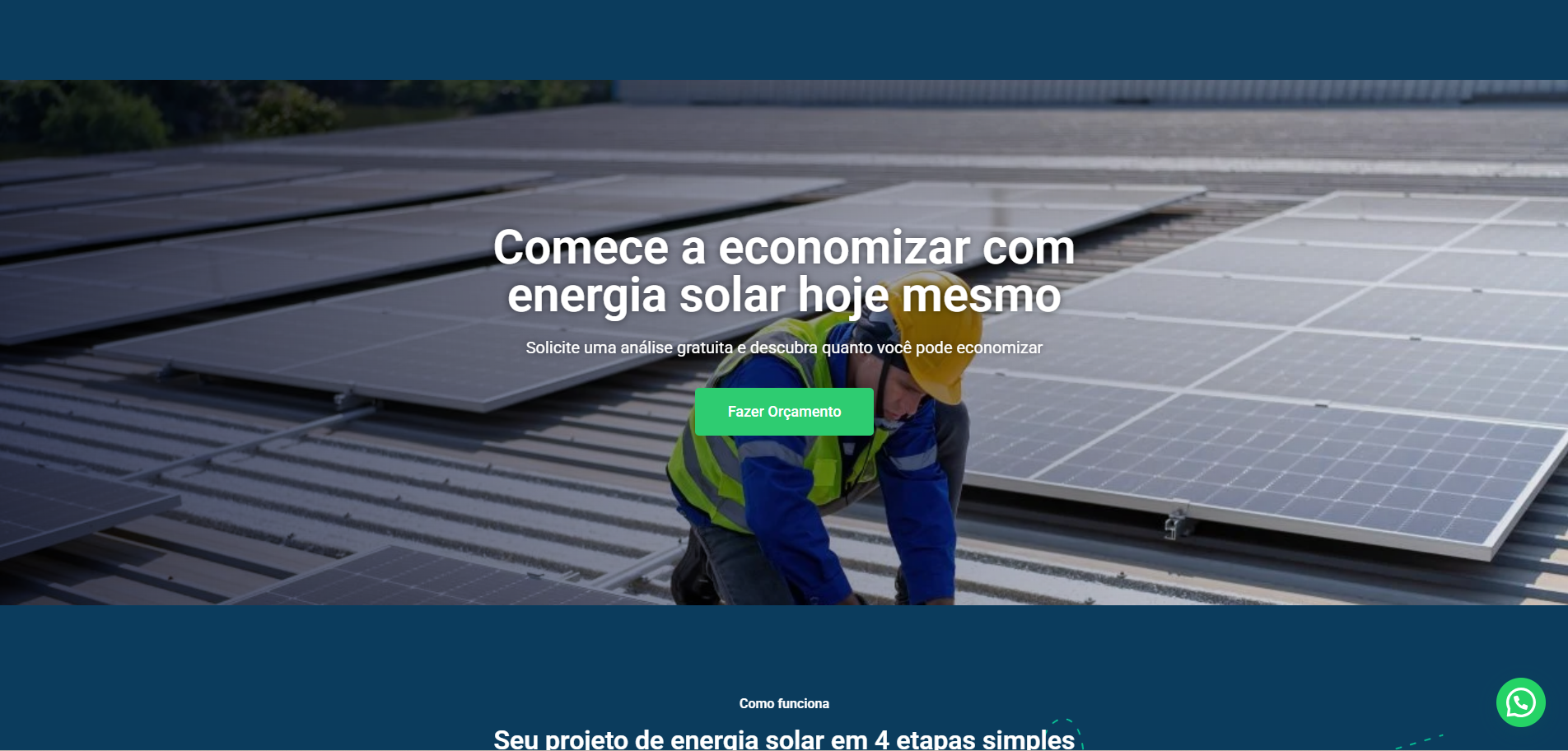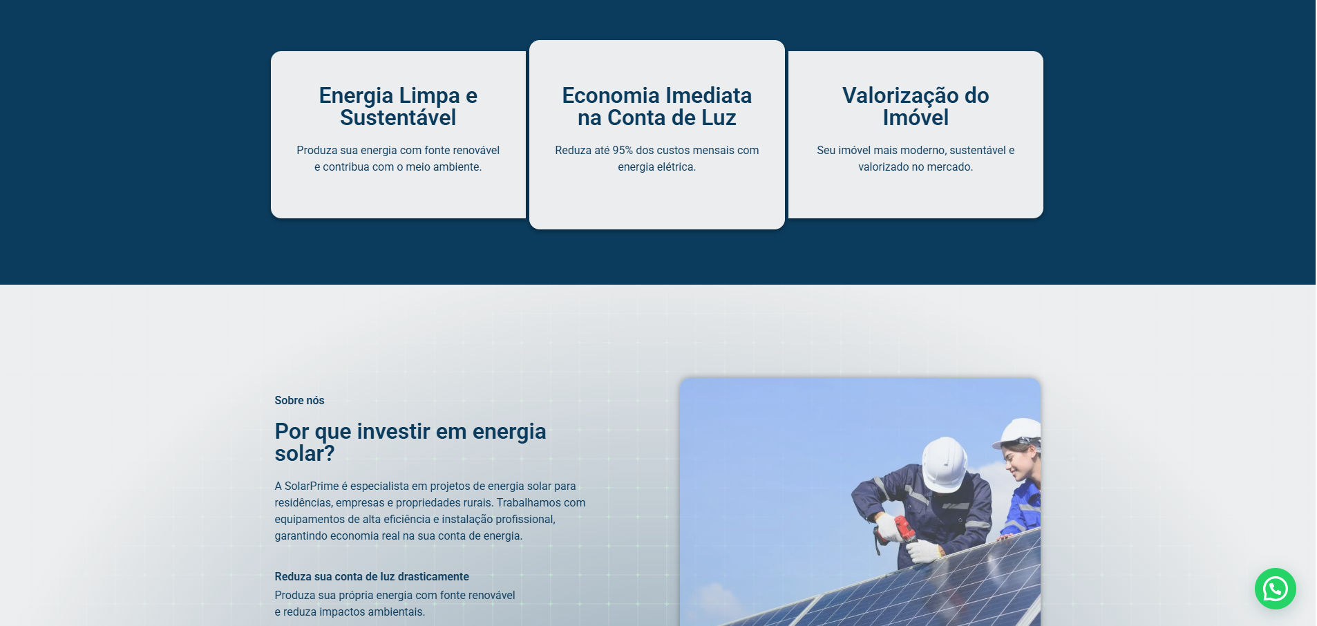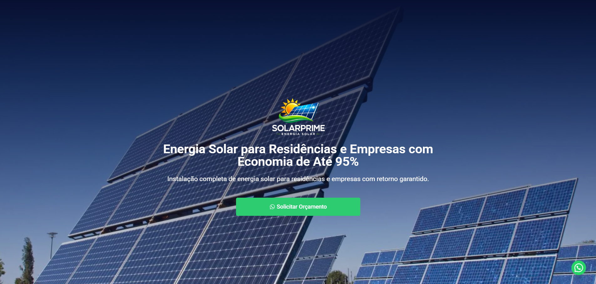 Landing page profissional com foco em conversão, design responsivo e captação de leads para energia solar.