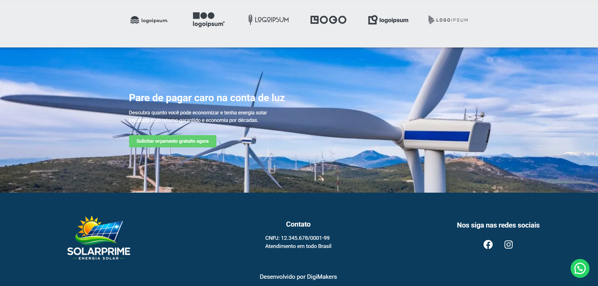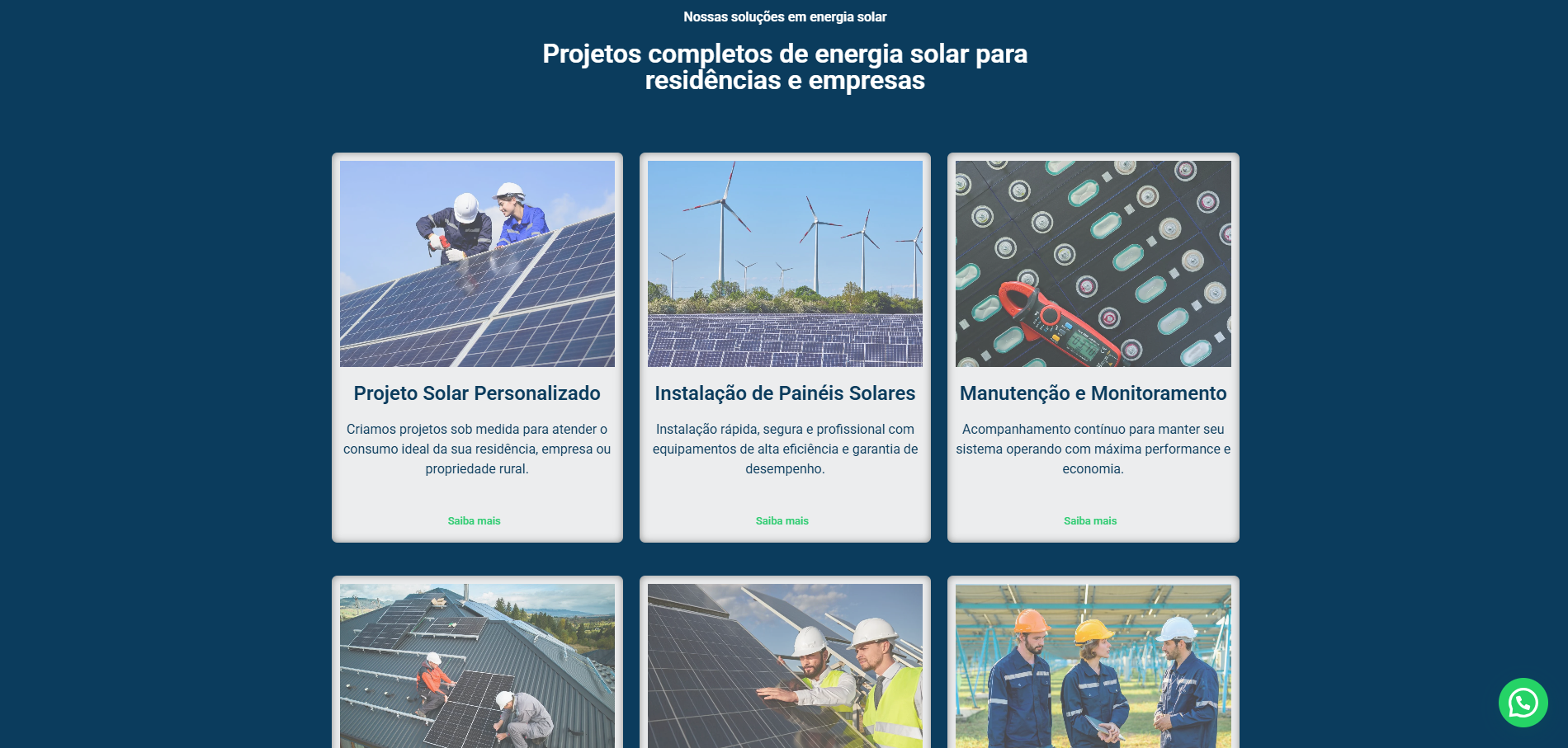 O resultado é uma landing page otimizada para performance, geração de leads e fortalecimento da presença digital da empresa no mercado de energia solar.