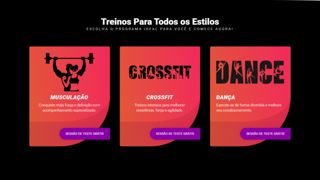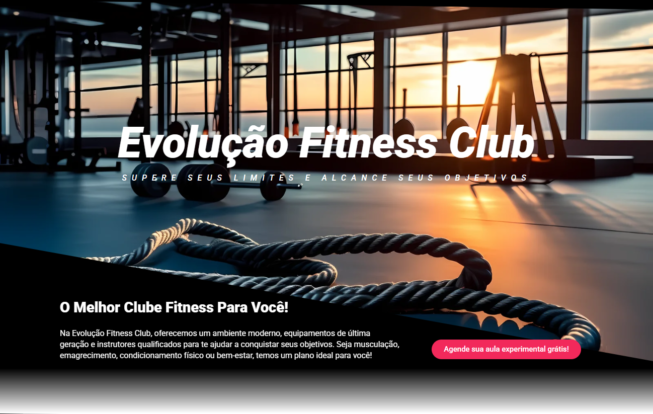 O Modelo FTN1 foi desenvolvido para academias, estúdios fitness e centros de treinamento que buscam atrair novos alunos com um site moderno, impactante e focado em resultados. Com um design dinâmico e visual forte, o site transmite energia, profissionalismo e incentiva o visitante a entrar em ação, seja para agendar uma aula ou entrar em contato.